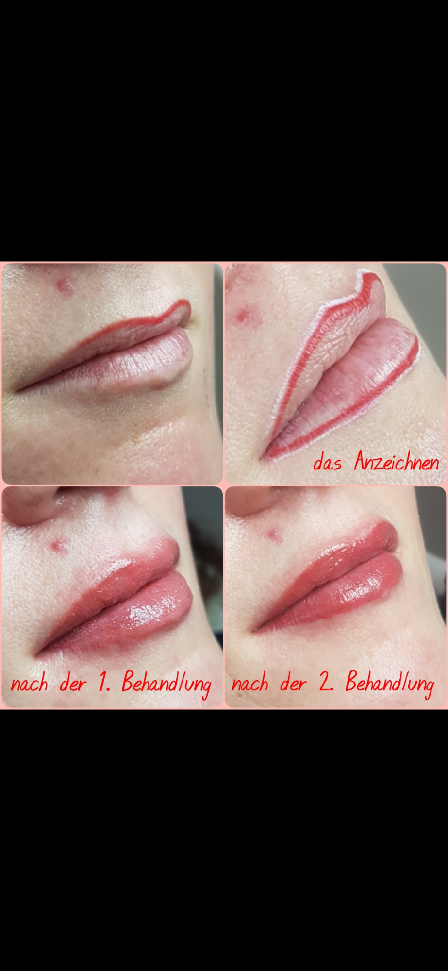 Auch hier zeichne ich Ihnen die Kontur vor. Gemeinsam besprechen wir dann die Möglichkeiten, die Ihre Lippen schwungvoller, frischer und voller aussehen lassen.