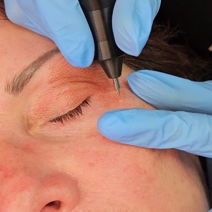 Der PlasmaPen wird in etwa 1mm Höhe über die Haut geführt.
